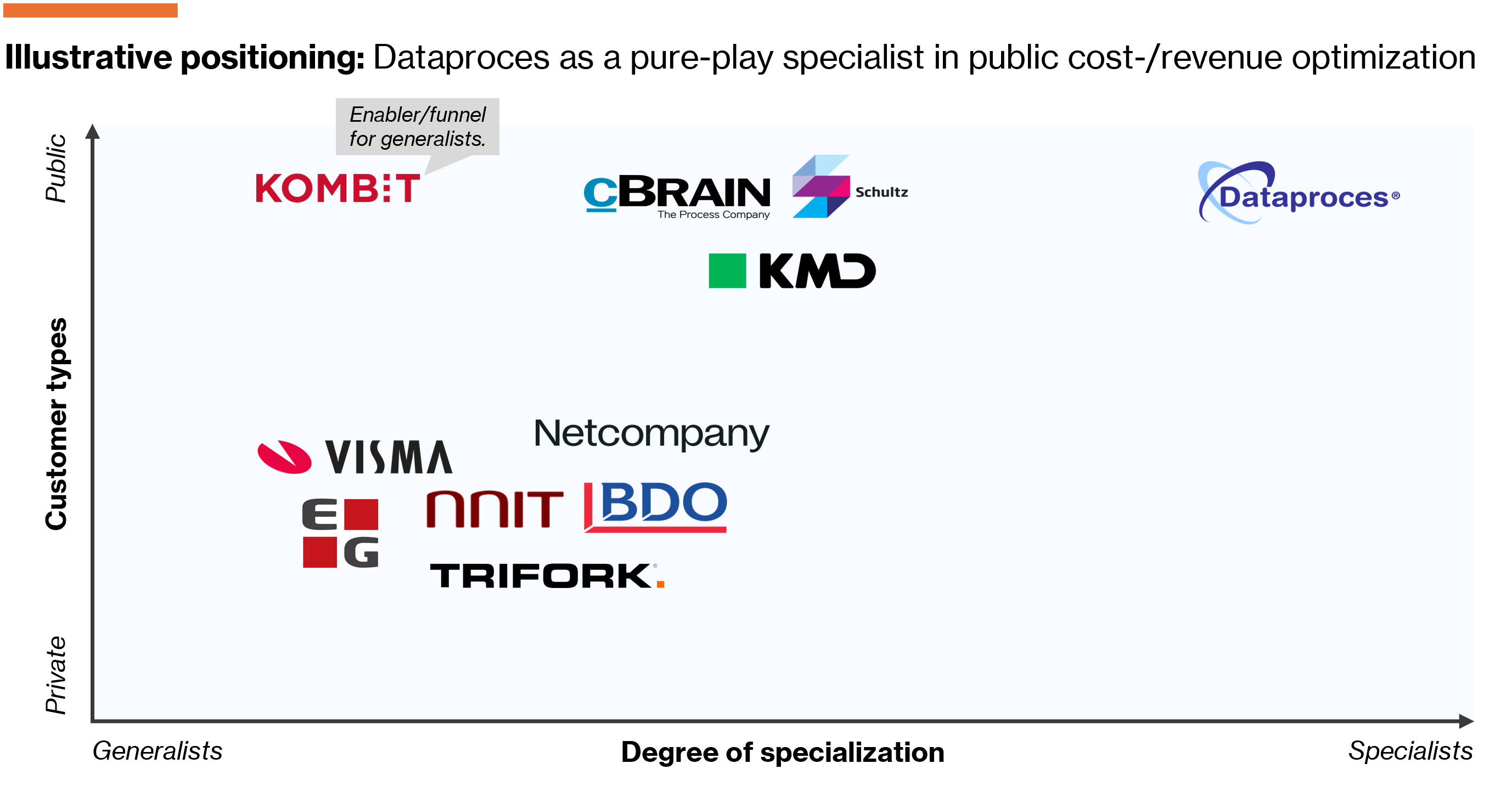 KMD which was previously owned by KL — the Danish municipalities’ association — before being sold in an LBO to EQT and ATP in 20088. The company is by far the largest IT provider to municipalities, aided by its monopoly-like start as a private company, though competition has intensified. My discussions with management and employees across four municipalities suggest that Dataproces has taken share from both over the past years.