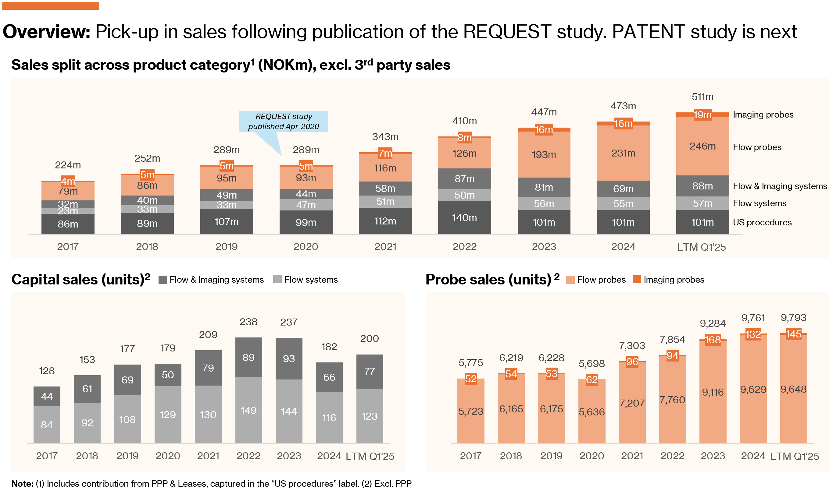 Following a sharp correction from its 2021 peak, Medistim now trades at ~20x fwd. EV/EBITDA (cons.), though shares have rebounded ~40% on the back of strong Q1-2025 results. Momentum is building again as (i) APAC demand normalizes on the back of delayed hospital investments and distributor destocking; and (ii) margins expand through operating leverage as Medistim transitions toward direct market access. Looking ahead, the upcoming PATENT study could replicate the catalytic impact the REQUEST study had on cardiac — setting the stage for another leg of adoption-driven growth in vascular, a segment that remains even more underpenetrated.