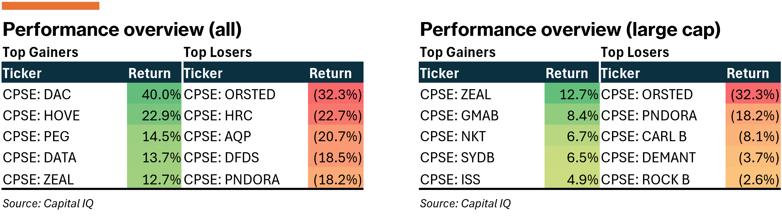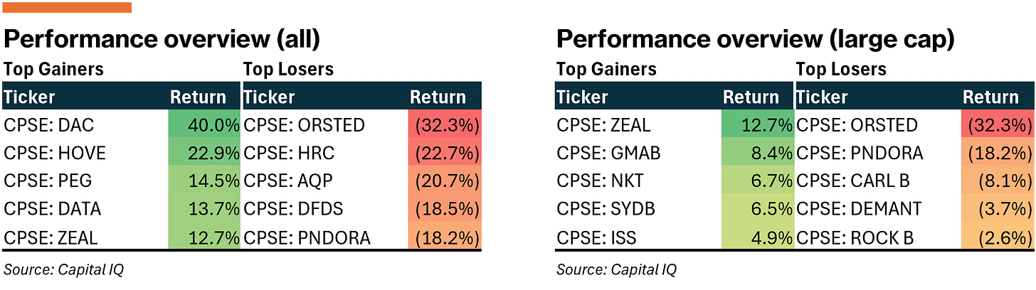 Packed earnings week in Denmark which leaned negative on most fronts, especially from prominent large-cap names. In that context, the all-share (-0.7%) and large-cap (-1.0%) both held up relatively well.