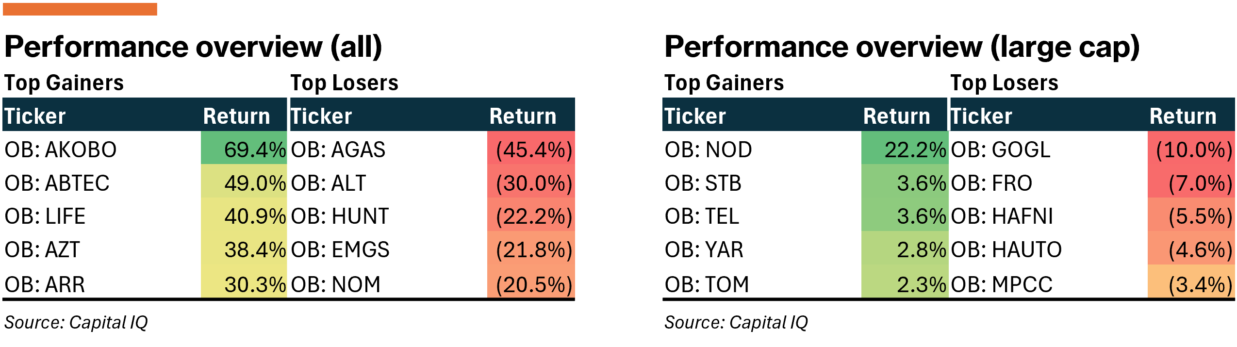 Equities in Norway continue its march forward, with the all-share (+0.4%) and large-cap (+0.9) ending the week higher. Contrary to the rest of the Nordics, earnings leaned slightly more positive in Norway.
